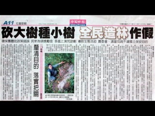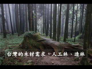 林林 務 局 改 制 搶 救 棲 蘭蘭 全 ⺠民 造 林林 減 碳 造 林林 森 林林 認 證 禁 伐 天 然 林林 伐⽊木1.7萬公頃 約200萬立⽅方公尺