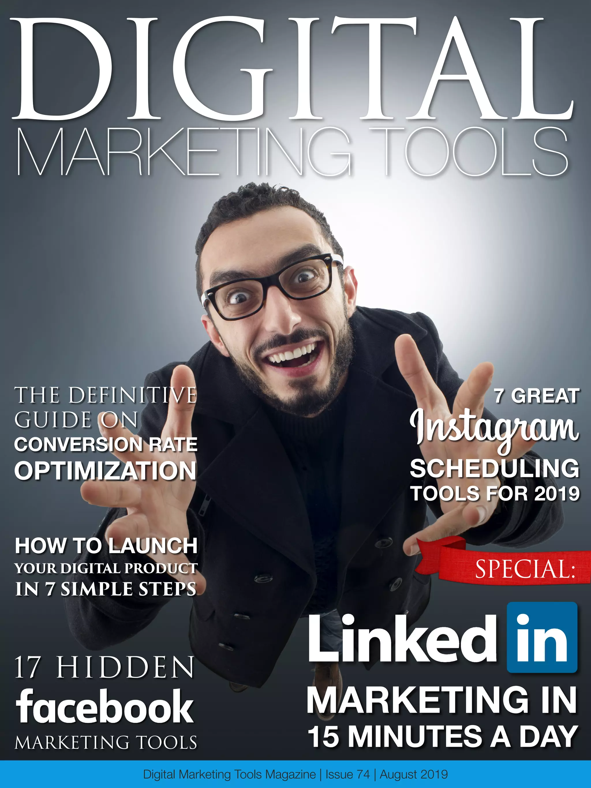 The August 2019 issue of Digital Marketing Tools Magazine focuses on conversion rate optimization (CRO) and provides actionable insights on improving digital marketing strategies. Key topics include A/B testing, optimizing landing pages, and leveraging various marketing tools to enhance engagement and conversions. The issue also highlights new tools for social media scheduling and content marketing, aiming to equip marketers with the latest techniques and best practices.