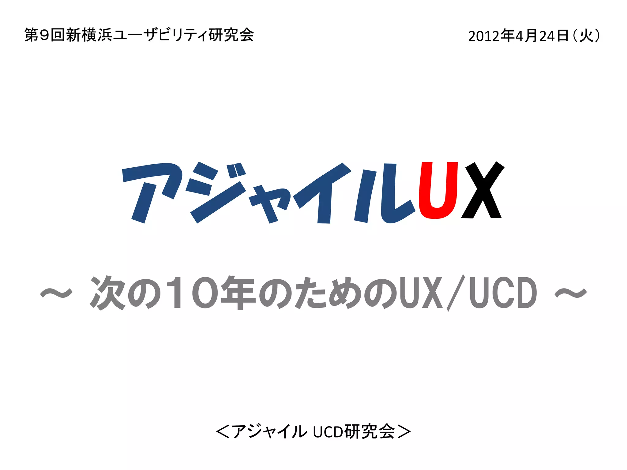 第9回新横浜ユーザビリティ研究会 2012年4月24日(火) アジャイルUX ~ 次の10年のためのUX/UCD ~ <アジャイル