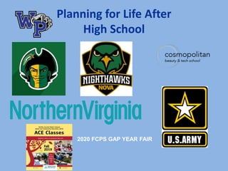 This document provides information to help seniors at West Potomac High School plan for life after graduation. It discusses options like college, career training, military service, and gap years. It provides resources for students to research post-secondary fits, including meeting with counselors, attending college fairs and rep visits, using Naviance, and more. Statistics on previous graduating classes' college enrollment are included. Application timelines and requirements are outlined to guide students through the process.