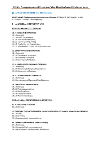 Στο έγγραφο παρουσιάζεται η νέα ύλη, σύμφωνα με την ΥΑ ( Φ6/44727/Δ4/9-4-2020) για τα μαθήματα του Τομέα Διοίκησης και Οικονομάς στα ΕΠΑΛ (Αρχές Οικονομικής Θεωρίας / Οργάνωση και Διοίκηση Επιχειρήσεων)