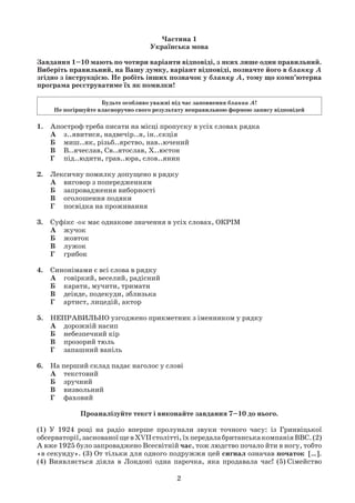 Завдання 11–23 мають по п’ять варіантів відповіді, з яких лише один правильний.
