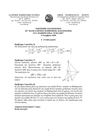 81ος ΠΑΝΕΛΛΗΝΙΟΣ ΜΑΘΗΤΙΚΟΣ ΔΙΑΓΩΝΙΣΜΟΣ
