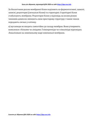 б) білки становлять близько 60 % сухої маси мембран. Розрізняють