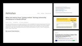 The document discusses transforming learning environments by moving beyond seeing education solely as skill collection and technology as just a tool. It proposes several frameworks for developing epistemically and socially situated learning tasks using technology. Specifically, it advocates empowering learners by providing resources and creating conditions for them to access, decode, and (re)create knowledge through personal learning networks and discussion with others. The goal is lifelong learning and empowering education.