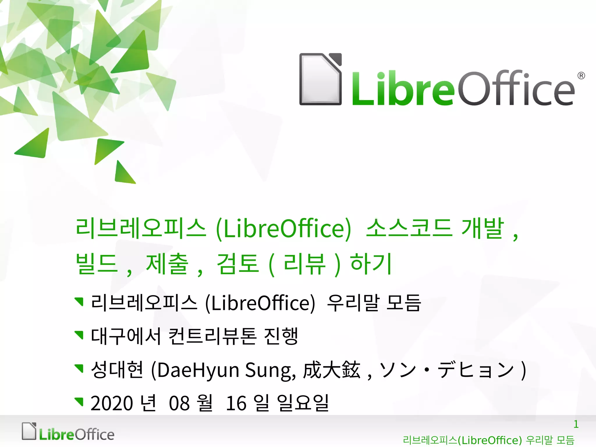 [2020 컨트리뷰톤] 대구에서 리브레오피스(LibreOffice)의 소스코드 개발, 빌드, 제출, 검토(리뷰)하기 등을 소개