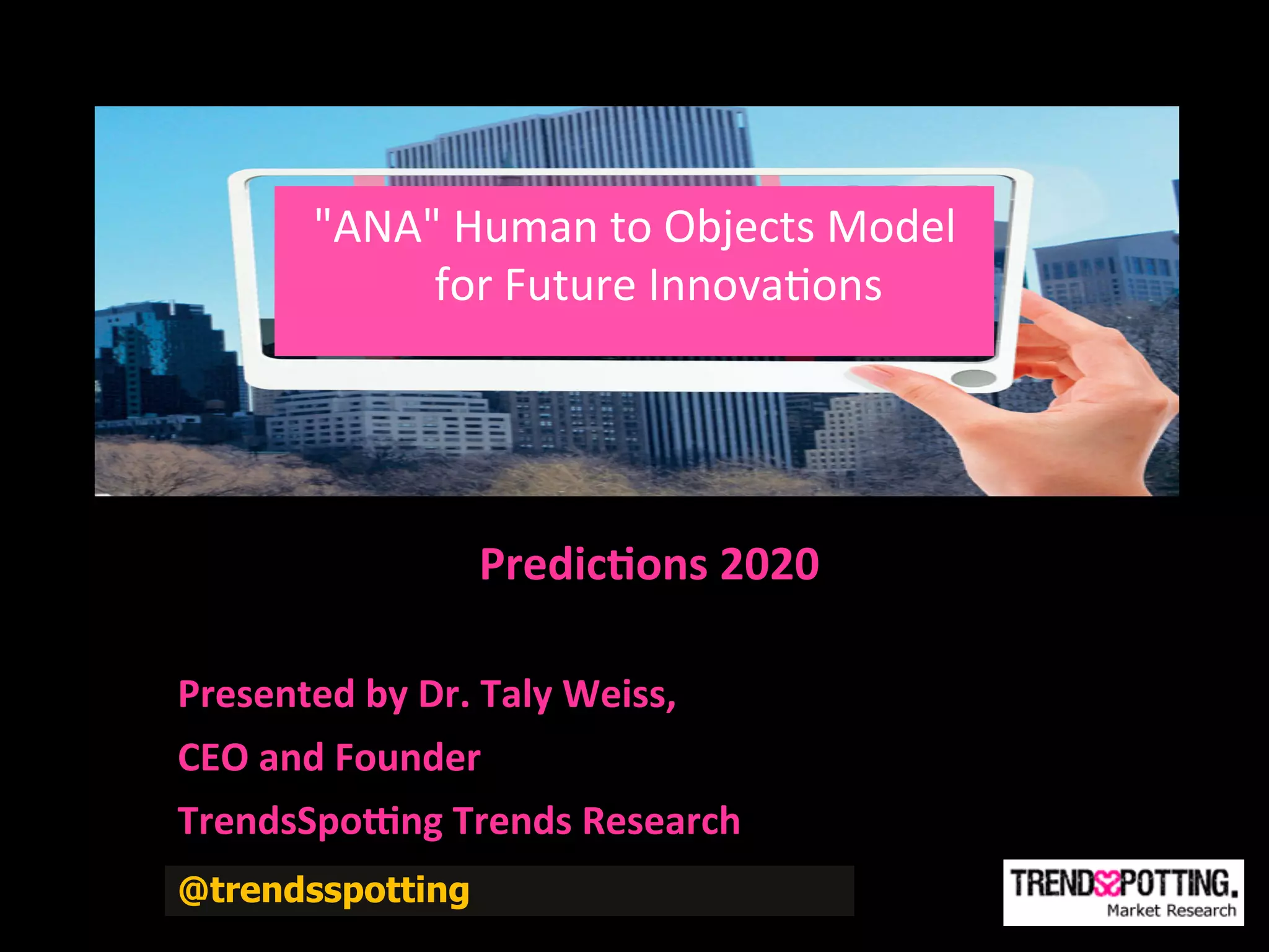 The document presents the 'ana' human to objects model for future innovations, which emphasizes the connection between humans, objects, and systems through data and notifications. It discusses the use of real-time feedback and personalized alerts based on individual needs and preferences, aimed at enhancing everyday activities such as shopping and health monitoring. The model also highlights the integration of social and consumer networks to provide relevant information and recommendations, supporting healthy lifestyle choices.