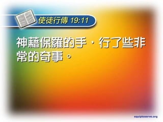保罗在以弗所的宣教工作中,讲述了福音的真理,影响了无数人信主,并导致了当地邪术书的焚烧及引发城市骚动。福音在神国的运作中不仅关乎个人救恩,还要求信徒以权柄和公义,为基督活出见证。信徒的好行为和对罪的果断态度是对信仰的真实体现,能够吸引他人归向耶稣。
