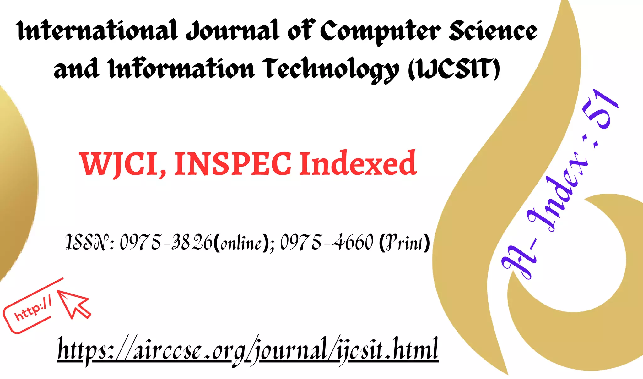 The document lists published articles in the International Journal of Computer Science and Information Technology, covering various topics including sentiment analysis, big data in healthcare, and the professionalization of the hacker industry. Each entry includes citations and links to the respective papers, indicating the authors and their contributions. The journal is indexed and provides information about the contact details and access to further resources.