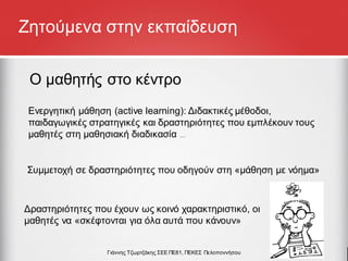 εφαρμογή της μαθητοκεντρικήςπροσέγγισης της ενεργητικής μάθησης που περιλαμβάνει