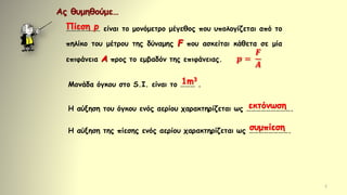 Η αύξηση της πίεσης ενός αερίου χαρακτηρίζεται ως …………………….