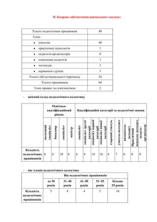 ІІ. Кадрове забезпеченнянавчального закладу: