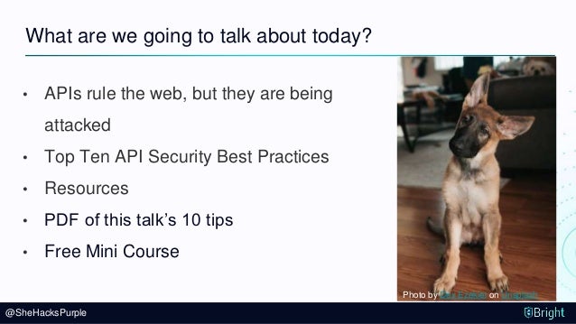 Tanya Janca, CEO and founder of We Hack Purple, emphasizes the importance of API security, presenting more than ten best practices to protect APIs, which are vital yet vulnerable parts of web applications. Key recommendations include creating an inventory of all APIs, using API gateways, enforcing strict coding practices, and monitoring through logging and alerting. The document also highlights resources such as a free PDF of the talk, a mini course on API security, and various community engagement options.