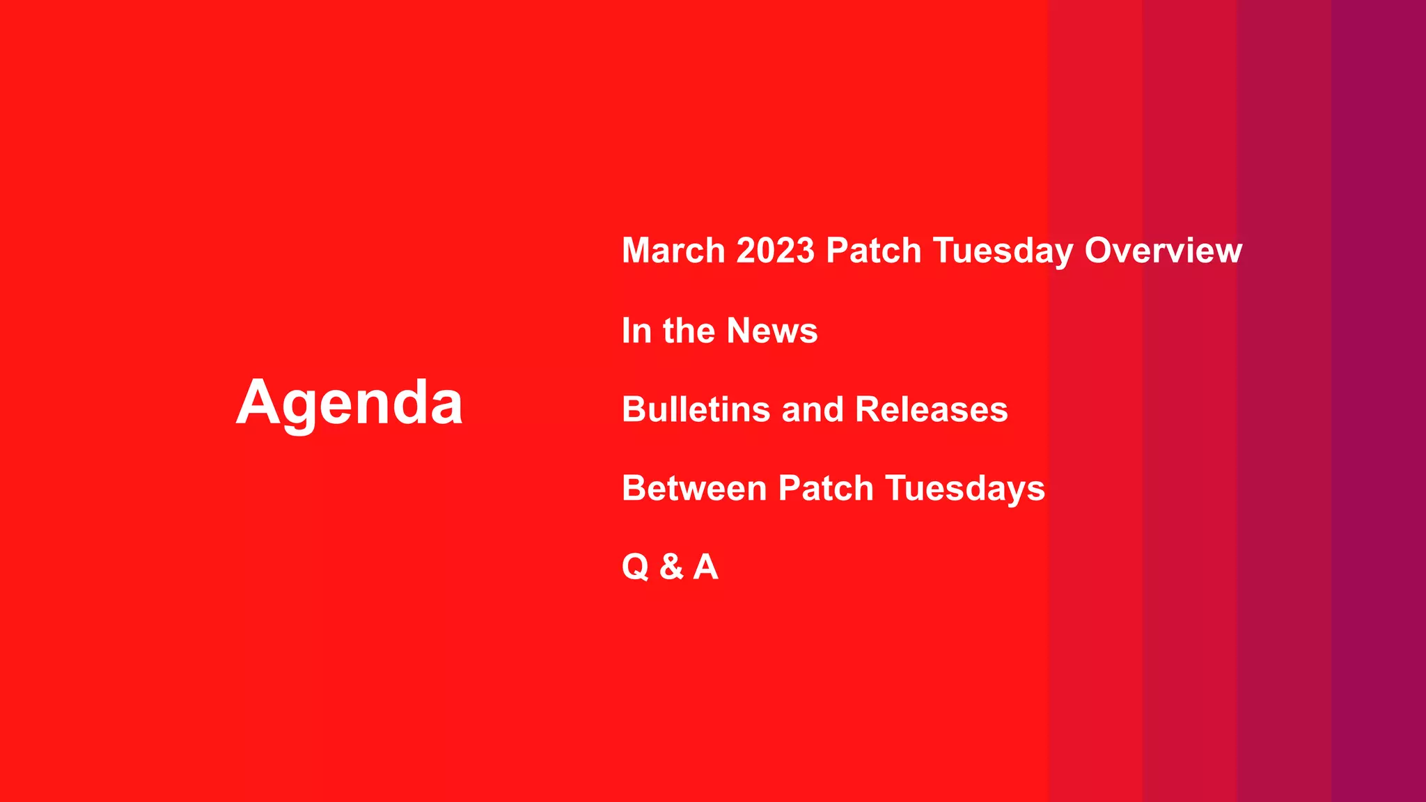 The March 2023 Patch Tuesday webinar hosted by Ivanti highlighted the resolution of 80 new CVEs by Microsoft, including two zero-day exploits affecting Microsoft Office and Windows SmartScreen, with Mozilla also releasing updates for Firefox addressing 13 vulnerabilities. Key vulnerabilities discussed include a Windows SmartScreen bypass and a critical Microsoft Outlook elevation of privilege vulnerability. The webinar provided updates on various impacted products and known issues related to the updates, emphasizing the importance of immediate patching for security.