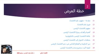 الاقتصاد هو الاقتصاد القائم على الأنشطة الرقمية والتقنيات الحديثة، ويمثل جزءًا حيويًا من التحول الرقمي العالمي. فهو يوفر مزايا مثل زيادة التنافسية، وتحسين الكفاءة، وتوسيع الوصول للأسواق العالمية، وخلق فرص عمل جديدة. كما يرتبط ارتباطًا وثيقًا بتكنولوجيا المعلومات والابتكار في مختلف المجالات.