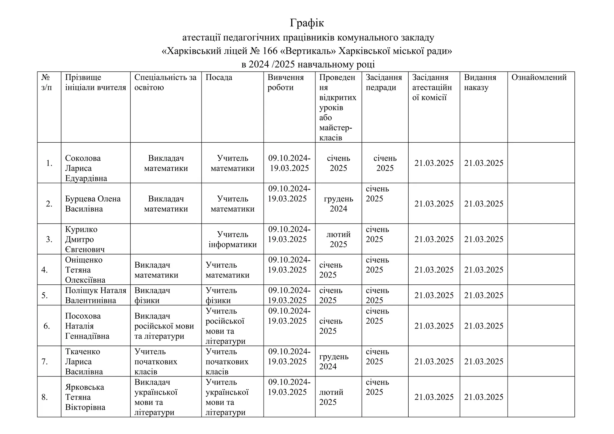 ініціали вчителя