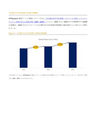 QYResearch調査チームの最新レポートである「全自動生化学分析装置―グローバル市場シェアとランキング、全体の売上と需要予測、2024~2030」によると、2024年から2030年の予測期間中のCAGRが2.6%で、2030年までにグローバル全自動生化学分析装置市場規模は42.2億米ドルに達すると予測されている。