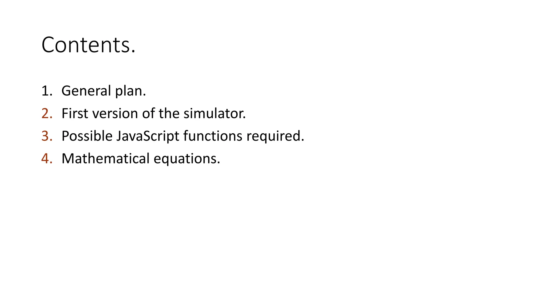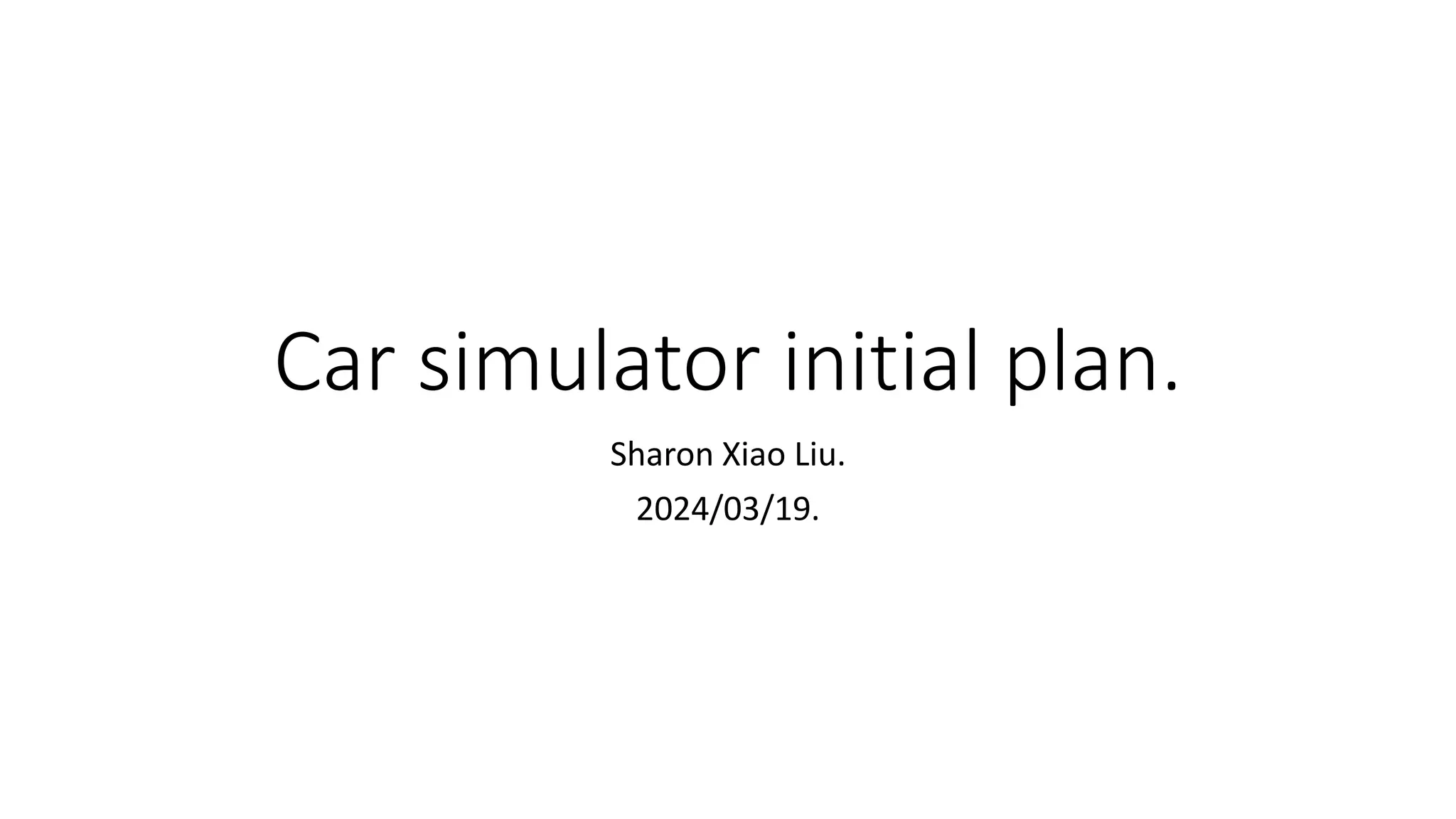 The document outlines an initial plan for a car simulator programmed in JavaScript. The first version will include a turn-based simulation with a bird's eye view of a road with a left turn, clutch and gear pedals, and a steering wheel. The car will move in units along the road and crash if instructions are wrong. Possible JavaScript functions needed include using SVG for the view, forms for controls, and equations for speed and steering ratio. The purpose is to teach people how to drive.