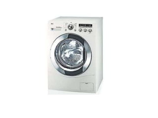This document summarizes the key features and specifications of washing machines. It discusses the two main types - top loading and front loading machines. Top loading machines are generally cheaper but use more water, while front loading machines save water and energy but are more expensive. The document also covers dimensions, materials, colors, durability features like ceramic heaters and diamond drums, pricing for different capacities, and warranty periods and claims processes.