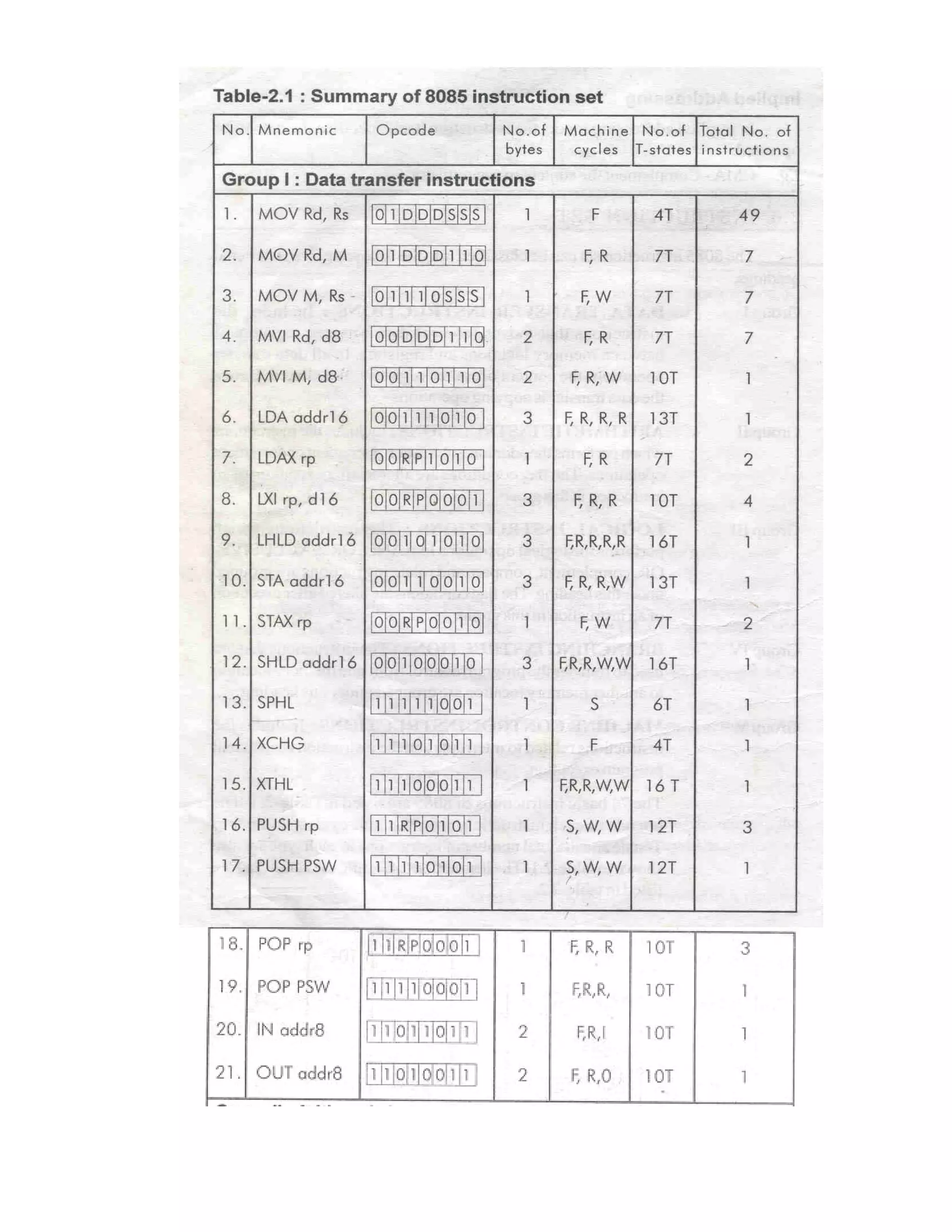 8085 Architecture – Instruction set – Addressing modes – Timing diagrams – Assembly language