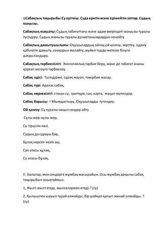 түсіндіру. Судың манызы туралы дүниетанымдардынкеңейту.
