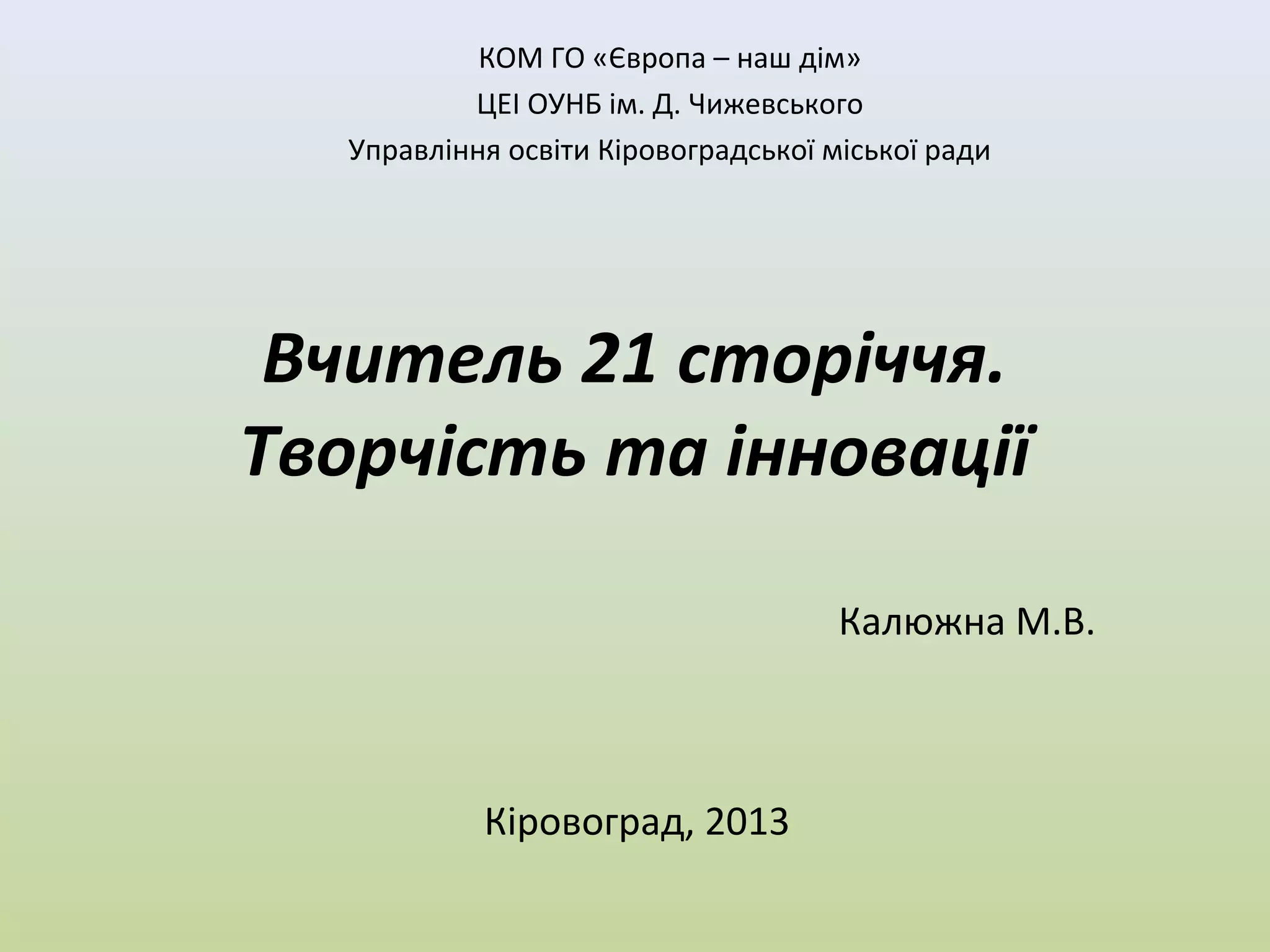 вчитель 21 сторіччя 1. КОМ ГО «Європа – наш дім»