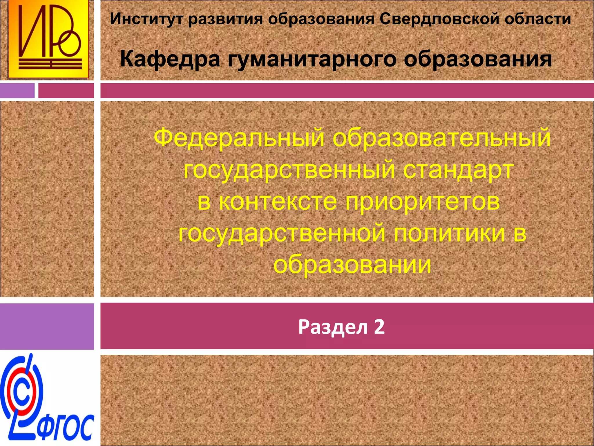 Документ описывает федеральный образовательный государственный стандарт и его соотношение с государственной политикой в области образования в России. Основное внимание уделяется стратегии развития системы образования, приоритетам и целям, направленным на обеспечение доступности качественного образования. Также рассматриваются механизмы реализации образовательной политики в контексте современного общества и экономики.