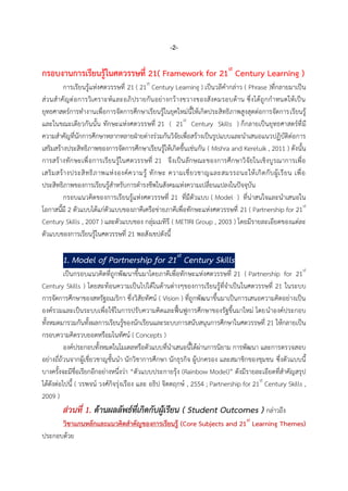 ศตวรรษใหม่ซึ่งจะช่วยให้นักเรียนได้เตรียมความพร้อมหลายด้านทั้งการรู้จักวิธีคิด , เรียนรู้ , ทางาน ,