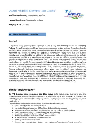 Όμιλος: “Ψηφιακές Δεξιότητες- 21ος Αιώνας”