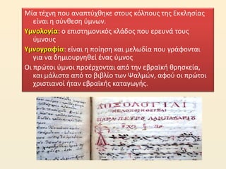 Τμνογραφία: είναι θ ποίθςθ και μελωδία που γράφονται