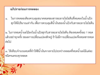 เซนติเมตร แล้วหยดสารละลายไอโอดีน หลอดละ 1 หยด สังเกตการเปลี่ยนแปลง