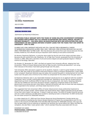 Rosemary DeCaires, a 32-year-old graduate of the University of Toronto, is suing York University for reimbursement of her full tuition over