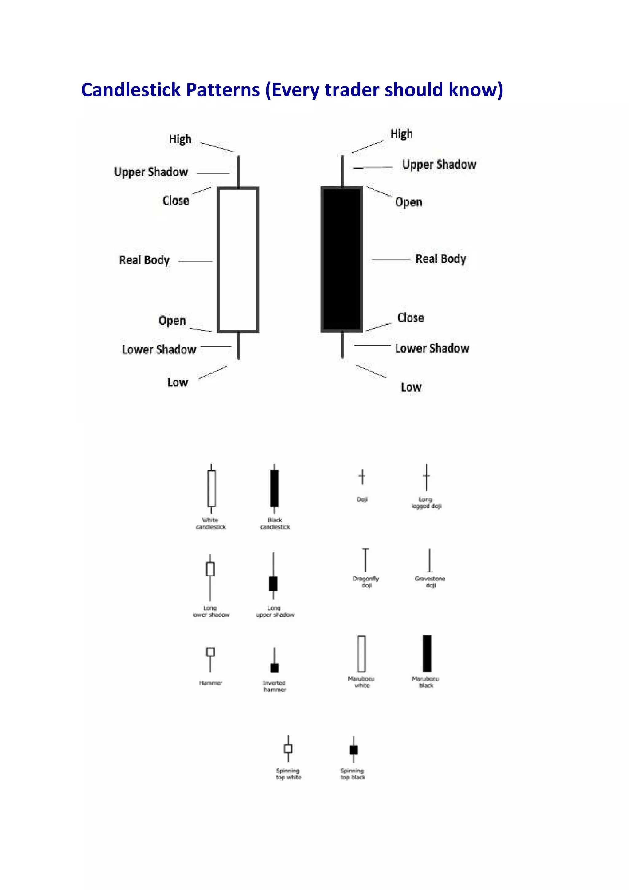 This document discusses various candlestick patterns that traders should be aware of, including doji patterns like the doji star and long-legged doji, and reversal patterns like the gravestone doji, hammer, and hanging man. It provides examples and describes the conditions that indicate each pattern, such as large upper shadows or gaps between candlesticks. Candlestick patterns can signal changes in market momentum and potential trend reversals.