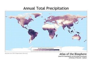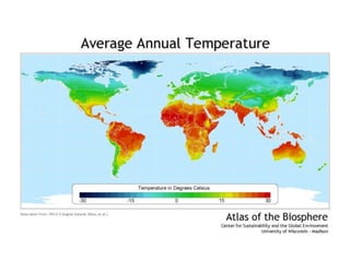 1. Climate strongly influences the distribution of ecosystems globally through temperature and precipitation patterns.