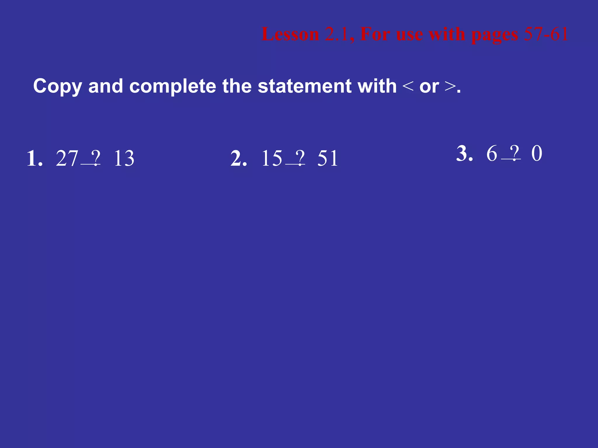 The document is a lesson on integers from a math textbook. It covers topics like the integer number line, comparing integers using less than/greater than symbols, ordering integers from least to greatest, opposites, absolute value, and simplifying expressions with integers. It provides examples and practice problems for students to learn about properties of integers and how to perform operations with positive and negative numbers.