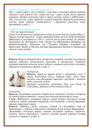 Мета: збагатити учнів новими знаннями про народні промисли України;