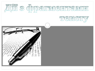 Дії з фрагментамитекстуДії з фрагментами тексту