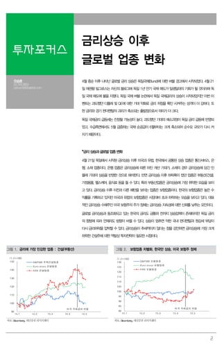 고 있다. 금리상승 이후 이전과 다른 패턴을 보이는 업종은 보험업종이다. 한국의 보험업종은 높은 수