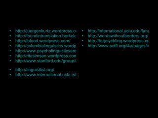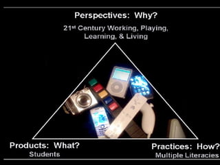 This document provides a list of resources for 21st century learning and learning languages other than English (LOTE). It also summarizes the "5 C's" from New Jersey's 21st century skills curriculum, which are communication, cultures, connections, comparisons, and communities. The document emphasizes using language for real-life communication and experiencing other cultures to develop cultural understanding.