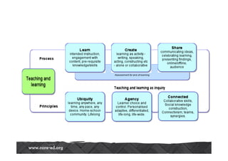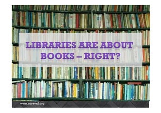 The document discusses the changing landscape of reading and learning in the 21st century, emphasizing the rise of e-books, audiobooks, and digital learning environments. It highlights that while traditional print remains popular, a significant number of adults are engaging more with digital formats and that future learning will be characterized by informal, self-directed, and personalized approaches. It also examines the evolving role of librarians as facilitators and curators of information in a connected and knowledge-driven economy.