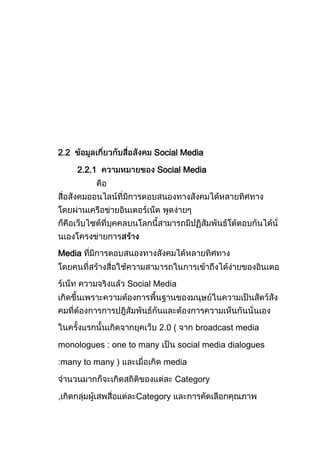The document discusses the history and types of blogs and social media. It describes how blogs evolved from online diaries to include different categories like personal blogs, news blogs, collaborative blogs, and more. It also outlines common social media tools and how they allowed users to generate and share content. These include blogs, microblogs, social networks, media sharing sites, social bookmarking, and forums. The final sections provide more details on the definition of blogs, the first use of the term, and popular blogging platforms.