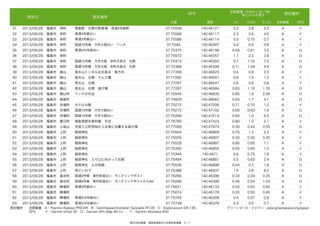 測定日 空間線量(マイクロシ-ベルト/時) 地上からの高さ GPS 測定場所 北緯 東経 1m 0.5m 測定機材 0.1m 空間線量 GPS 95 2013/09/28 福島市 大波 大波小学校 校庭 正門近くの側溝 37.757318504 140.554781528 0.47 0.70 B イ 96 2013/09/28 福島市 大波 大波小学校 校庭 正門近くの側溝 37.757361252 140.554901725 0.20 0.20 B イ 97 2013/09/28 福島市 大波 大波小学校 校庭 37.757404922 140.554966182 0.16 0.17 B イ 98 2013/09/28 福島市 大波 大波小学校 モニタリングポスト付近 37.757785292 140.55470014 0.34 0.40 B イ 99 2013/09/28 福島市 大波 大波小学校 モニタリングポスト付近 土 赤色の印 37.757785292 140.55470014 0.50 0.70 B イ 100 2013/09/28 福島市 大波 37.757753944 140.554496879 0.40 0.60 B イ 101 2013/09/28 福島市 大波 37.757774312 140.554481037 0.40 0.74 B イ 102 2013/09/28 福島市 大波 大波小学校 モニタリングポスト付近 階段の上 土 赤色の印 大波小学校 西側 正門 側溝 37.758079413 140.554538118 0.22 0.41 B イ 103 2013/09/28 福島市 大波 大波小学校 西側 正門 駐車場の側溝 37.758007916 140.554532586 0.40 0.60 B イ 104 2013/09/28 福島市 大波 大波小学校 東側 竹林 37.75805871 140.555101298 0.90 1.20 B イ 105 2013/09/28 福島市 大波 大波小学校 東側 除染作業で取り除いた土など 37.758060386 140.555101717 0.52 0.65 B イ 106 2013/09/28 福島市 大波 大波小学校 東側 未除染の土 37.758126687 140.5550614 1.00 1.70 B イ 107 2013/09/28 福島市 大波 大波小学校 東側 山へ続く道 北側 37.75793164 140.55512527 0.75 1.10 B イ 108 2013/09/28 福島市 大波 大波小学校 東側 山へ続く道 南側 37.757900711 140.55517422 0.90 1.60 B イ 109 2013/09/28 福島市 大波 大波小学校の東側の住宅地 37.757588066 140.555824405 0.33 0.55 B イ 110 2013/09/28 福島市 大波 大波小学校の東側の住宅地 記念碑 37.757622348 140.556539213 0.45 0.63 B イ 111 2013/09/28 福島市 大波 大波小学校の東側の住宅地 雨どい 37.757622348 140.556539213 0.40 0.77 B イ 112 2013/09/28 福島市 大波 大波小学校の東側の住宅地 電信柱 37.757696277 140.556802489 0.80 1.00 B イ 113 2013/09/28 福島市 大波 大波小学校の東側の住宅地 自転車 37.757757632 140.556886559 0.35 0.30 B イ 114 2013/09/28 福島市 大波 37.757367454 140.557393748 0.27 0.25 B イ 115 2013/09/28 福島市 大波 道路との境界 37.757367454 140.557393748 0.56 0.92 B イ 116 2013/09/28 福島市 大波 舗装された道路から畑へと続く草地の道 37.75758178 140.557205323 1.00 1.40 B イ 117 2013/09/28 福島市 大波 舗装された道路から畑へと続く草地の道 37.757607009 140.556995943 1.00 1.50 B イ 118 2013/09/28 福島市 大波 畑の入り口 37.757101497 140.554625792 0.90 1.70 B イ 119 2013/09/28 福島市 大波 畑の入り口 西側 アスファルトに生えたコケ 37.757101497 140.554625792 1.20 3.90 B イ 120 2013/09/28 福島市 大波 畑の入り口 西側 37.757101497 140.554625792 1.10 4.10 B イ 121 2013/09/28 福島市 大波 畑の入り口 東側 37.75694442 140.554937096 1.50 4.00 B イ 122 2013/09/28 福島市 大波 畑の入り口 東側 37.75694442 140.554937096 1.60 4.90 B イ 123 2013/09/28 福島市 大波 国道115号線 中村街道と大波小学校の間 37.75694442 140.554937096 1.60 5.44 B イ 124 2013/09/28 福島市 大波 国道115号線 中村街道と大波小学校の間 37.756966045 140.554934414 0.62 0.80 B イ 福島市 大波 国道115号線 中村街道と大波小学校の間 駐車場の中央 37.757098395 140.555039188 0.46 1.00 B イ 0.30 0.35 B イ 125 2013/09/28 大波小学校 モニタリングポスト付近 階段の隣 土 赤色の印 国道115号線 中村街道と大波小学校の間 37.757026143 140.554810697 駐車場 側溝 測定機材 空間線量 A:Thermo