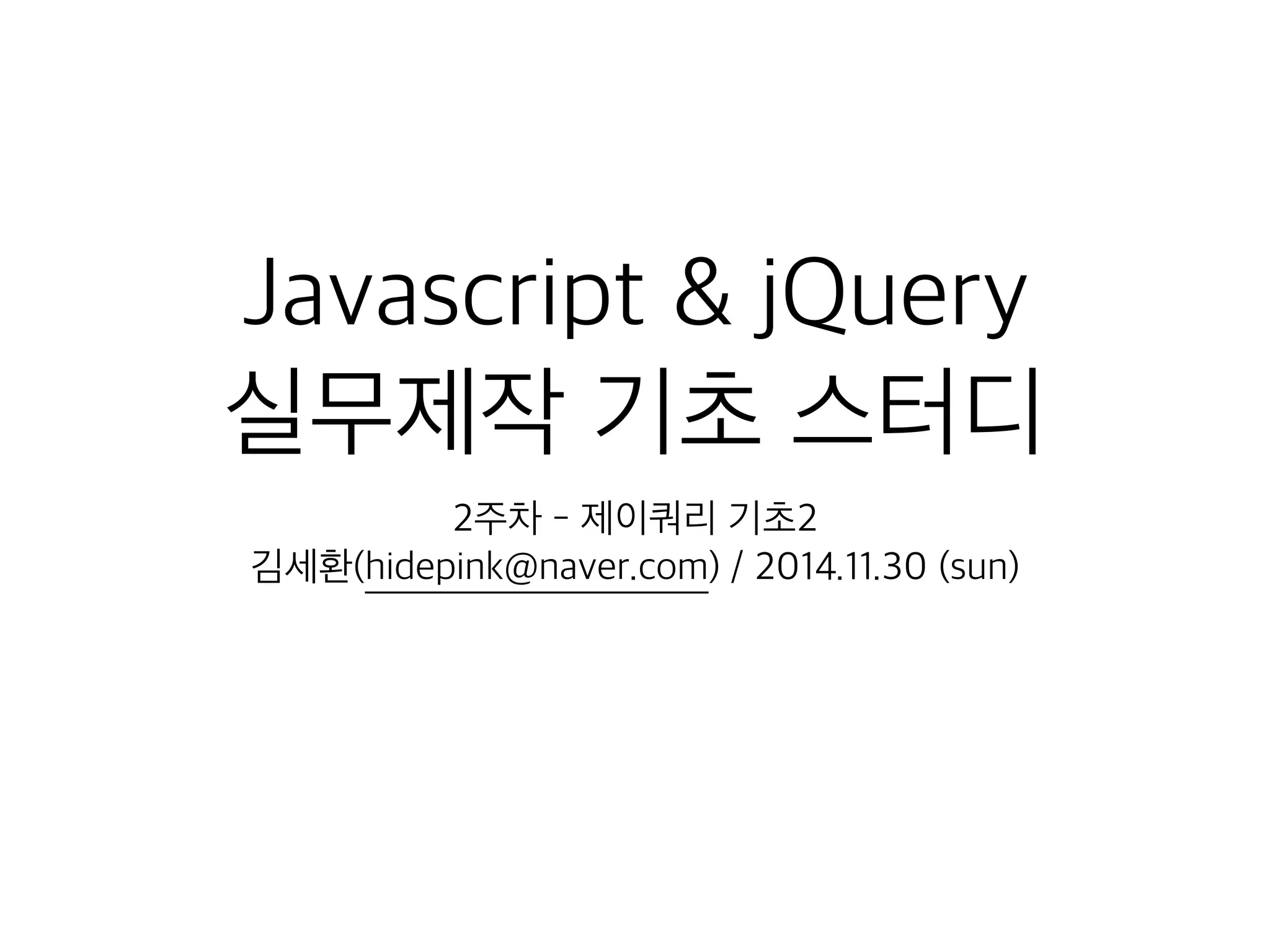 실무제작 기초 스터디 2주차 - 제이쿼리 기초2 김세환(hidepink@naver.com) / 2014.11.30 (sun)