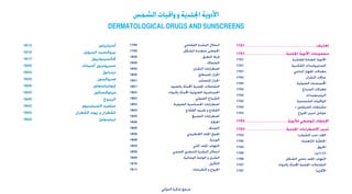 تتناول الوثيقة قائمة شاملة للأدوية والعلاجات الجلدية، بما في ذلك الأدوية المضادة للبكتيريا والفطريات والعلاج بالأشعة. تشمل الوثيقة تعريفات متعددة للأمراض الجلدية المختلفة وطرق العلاج الموضعية المتاحة. كما تهدف إلى تقديم معلومات مفيدة للممارسين في مجال الأمراض الجلدية.