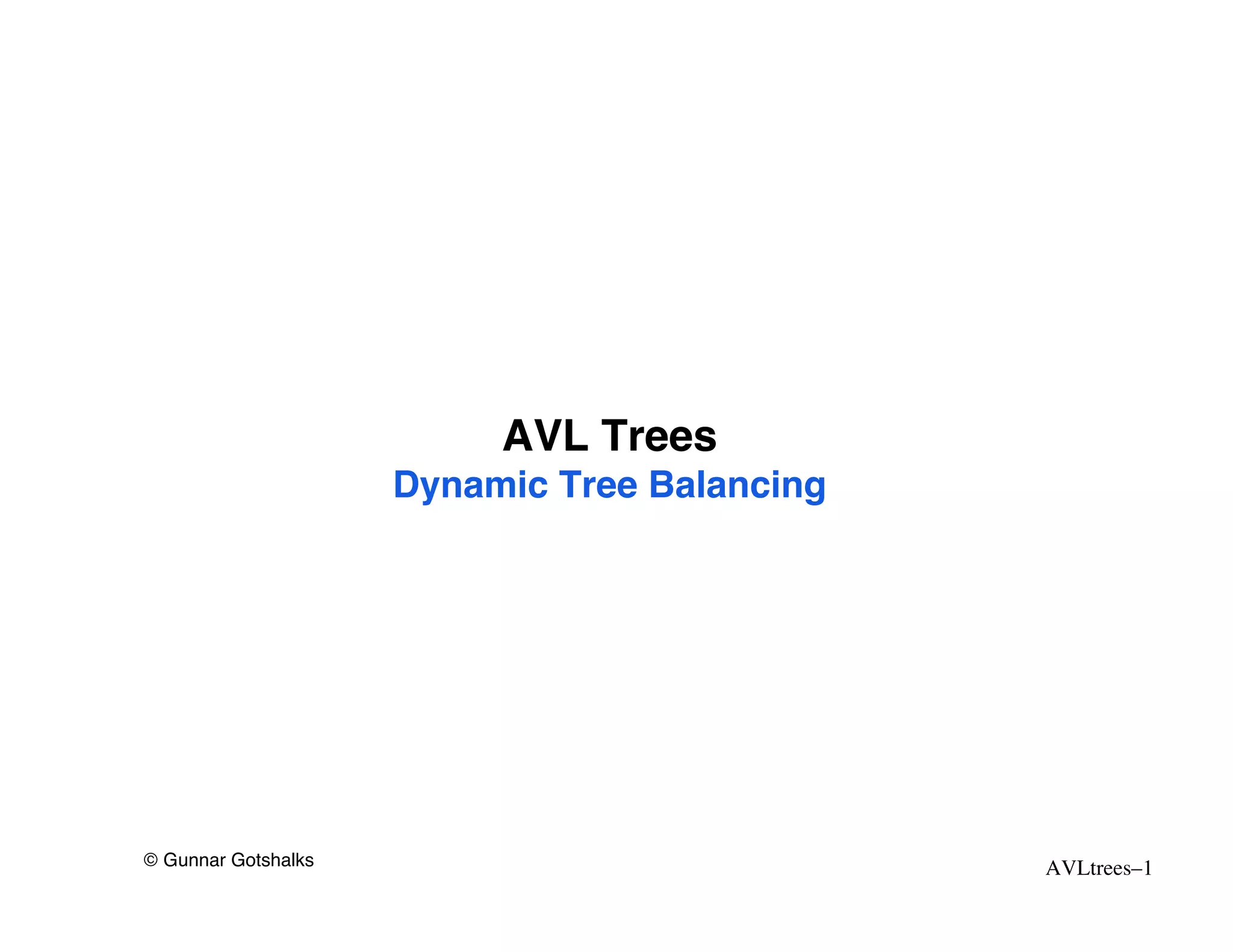 The document discusses AVL trees, which are self-balancing binary search trees. AVL trees ensure that insertions and deletions perform in O(log n) time by enforcing that the heights of any two subtrees of a node differ by at most one. They use rotations to rebalance the tree after insertions or deletions. Single and double rotations are used to move nodes and restore the balance property. Maintaining the balance factor during insertions, deletions, and rotations requires adjusting the heights of nodes as they are moved.