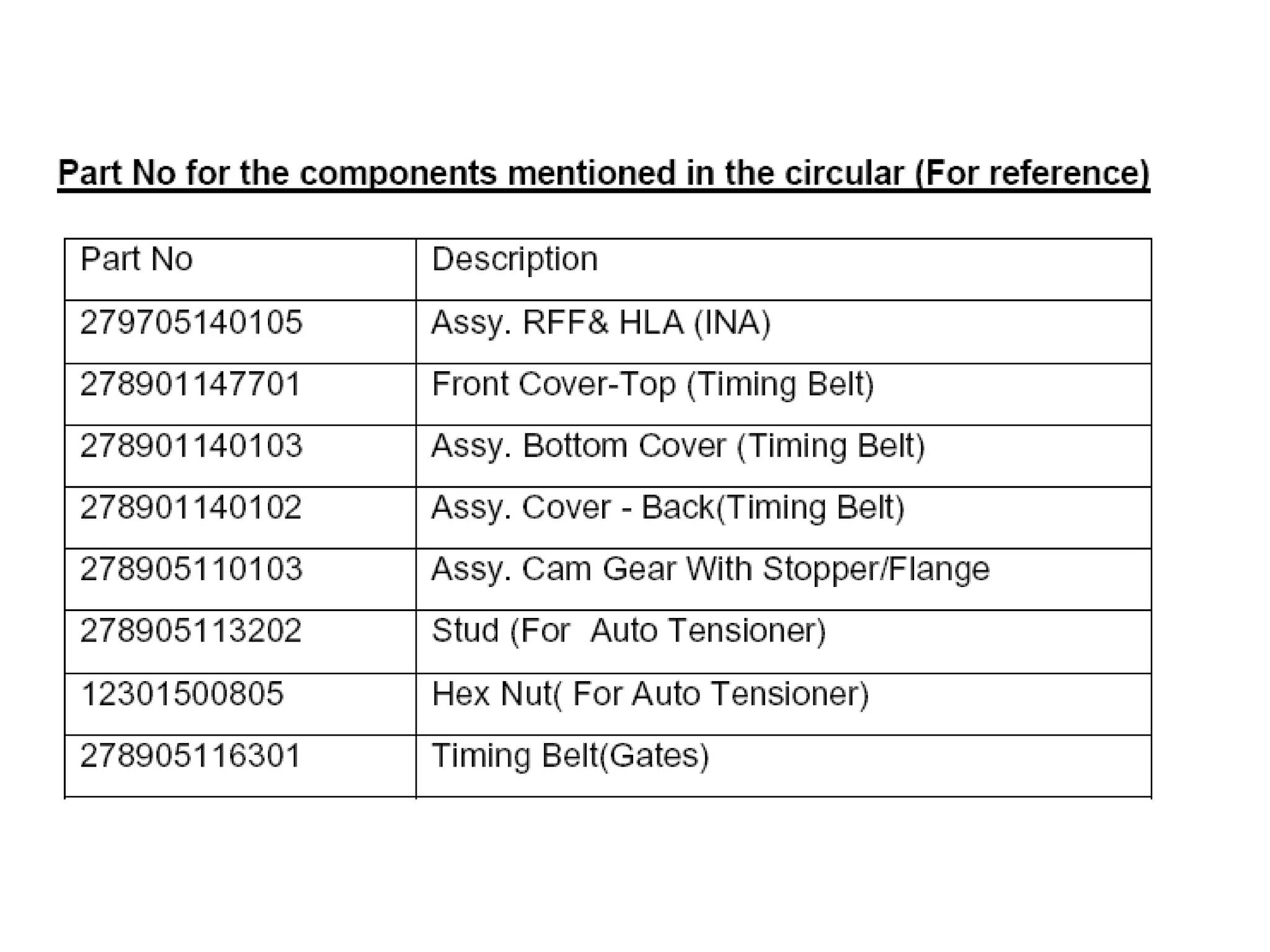 Case 2 : Auxiliary belt drive (Alternator Belt & Compressor belt) failure resulting timing disturbance. Reason : Following are the reasons. • Alternator Pulley Nut loosening (Not torqued) • Vibration damper pulley Upper Ring Separation(fitted with non modified Vibration damper)