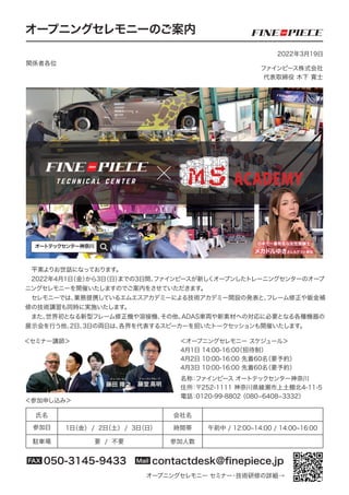 この度、神奈川県に弊社テクニカルセンターを開設し、4月1日からの3日間、オープニングセレモニーを開催いたします。
