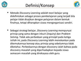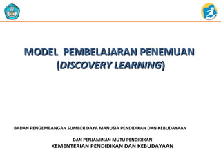 Model pembelajaran penemuan (discovery learning) adalah metode yang mendorong siswa untuk aktif dalam proses pembelajaran dengan mengorganisasi sendiri informasi yang mereka pelajari. Meskipun dapat meningkatkan pemahaman dan keterampilan kognitif siswa, metode ini juga memiliki kelemahan seperti waktu yang dibutuhkan untuk pengajaran dan kesulitan bagi siswa yang kurang pandai. Langkah-langkah operasional dalam penerapan metode ini meliputi stimulasi, identifikasi masalah, pengumpulan data, pengolahan data, verifikasi, dan generalisasi.