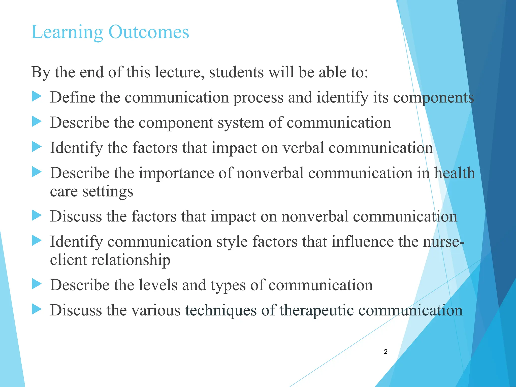 By theend of this lecture, students will be able to: