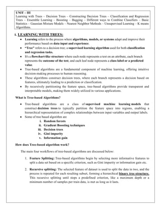 Trees – Ensemble Learning – Boosting – Bagging – Different ways to Combine Classifiers – Basic